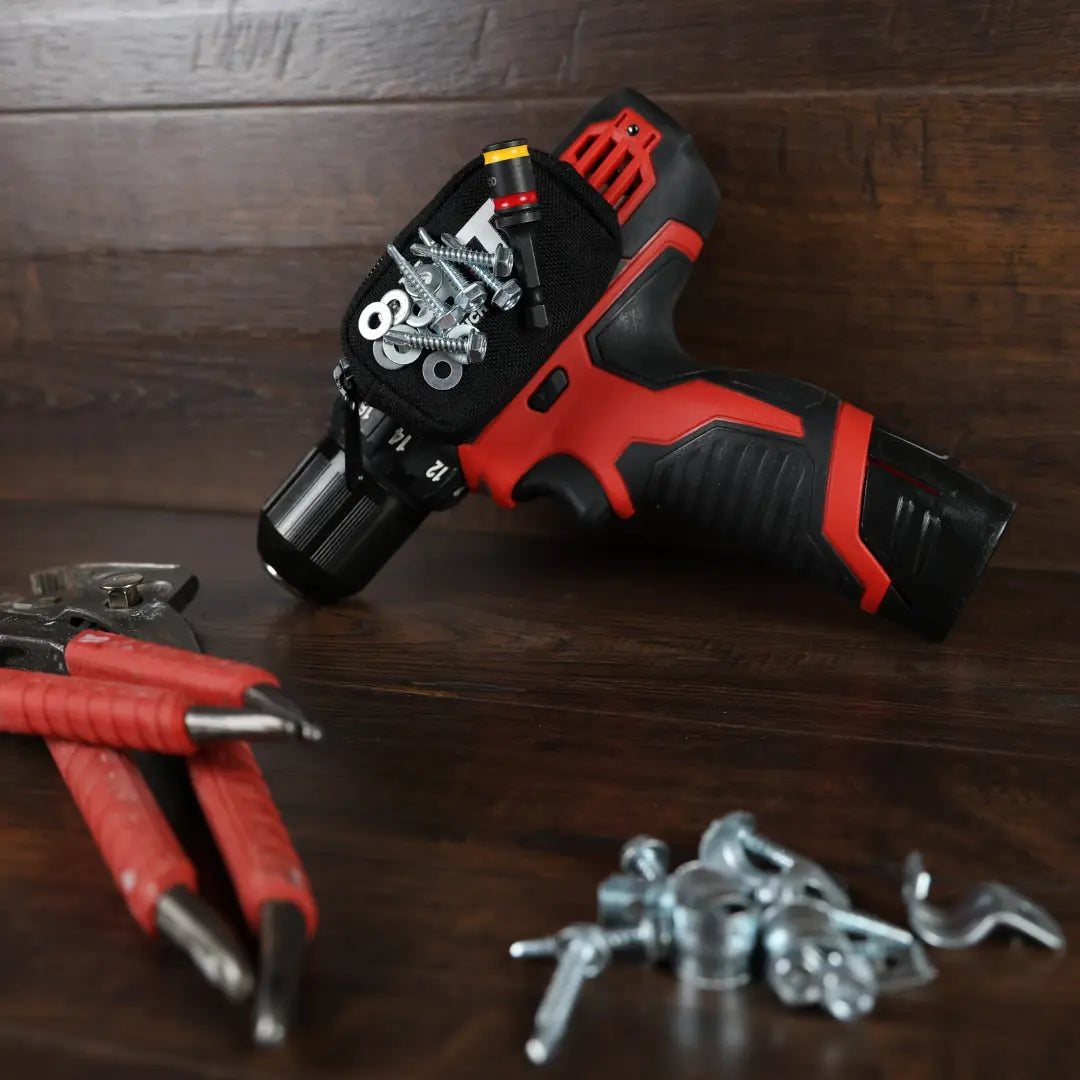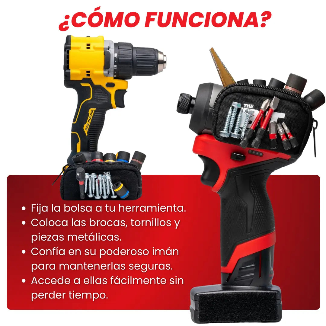 En mi trabajo necesito tener varias puntas y tornillos a la mano, y esta bolsa me ha ahorrado muchísimo tiempo. Se ajusta perfecto al taladro y la tela es muy resistente. Pensé que el imán no aguantaría tanto, pero me equivoqué… ¡es una maravilla!