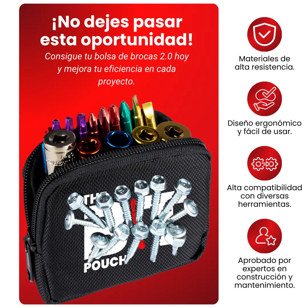 Con su imán de neodimio N-42, la bolsa de brocas 2.0 mantiene todas tus puntas y tornillos seguros y accesibles. Diseñada para profesionales y entusiastas del bricolaje, optimiza tu productividad al máximo.